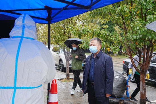 10月10日上午,副校长王辉前往七舍、十舍、二舍等核酸检测点,亲切慰问一线核酸检测工作人员,了解检测点采样情况,对工作人员舍小家为大家、无私奉献奋战在战“疫”一线的精神表示敬意。校长办公室相关工作负责人陪同。