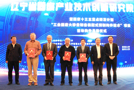 当日,由中建科技集团牵头、东北大学智慧水利与资源环境科技创新中心顾晓薇教授主持的国家十三五重点研发计划“工业固废大掺量制备装配式预制构件技术”项目在沈阳中建东北院总部大楼举行首块构件吊装仪式。该项目以大沈阳经济区为中心,建立“固废堆场、构件工厂、施工现场”三场同城的固废资源化与装配式建筑产业“双产融合”新模式,经过近一年的创新研究,完成固废掺量超过70%的装配式预制构件成套生产技术研发,并在中建东北院总部大楼这一超高层装配式建筑中开展工程示范,为全国固废产业技术攻关提供了“辽宁方案”。