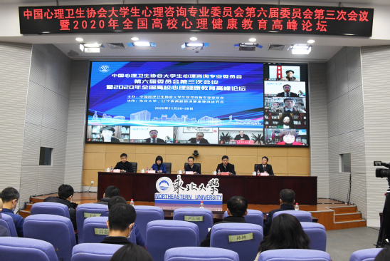 11月26日,由中国心理卫生协会大学生心理咨询专业委员会主办,东北大学和辽宁省高校心理健康教育研究会承办的中国心理卫生协会大学生心理咨询专业委员会第六届委员会第三次会议暨2020年全国高校心理健康教育高峰论坛在东北大学举行。教育部普通高等学校心理健康教育专家指导委员会主任、北京师范大学资深教授林崇德,教育部普通高等学校心理健康教育专家指导委员会副主任、上海交通大学党委书记杨振斌,中国心理卫生协会理事长马辛教授,中国心理卫生协会大学生心理咨询专业委员会主任、清华大学李焰教授,辽宁省委教育工委宣传部(思政处)部长刘大力,东北大学党委副书记张国臣出席开幕式。全国心理健康教育专家、各高校心理健康教育教师500余人线上参会,东北大学全体学生工作干部参加开幕式现场活动。