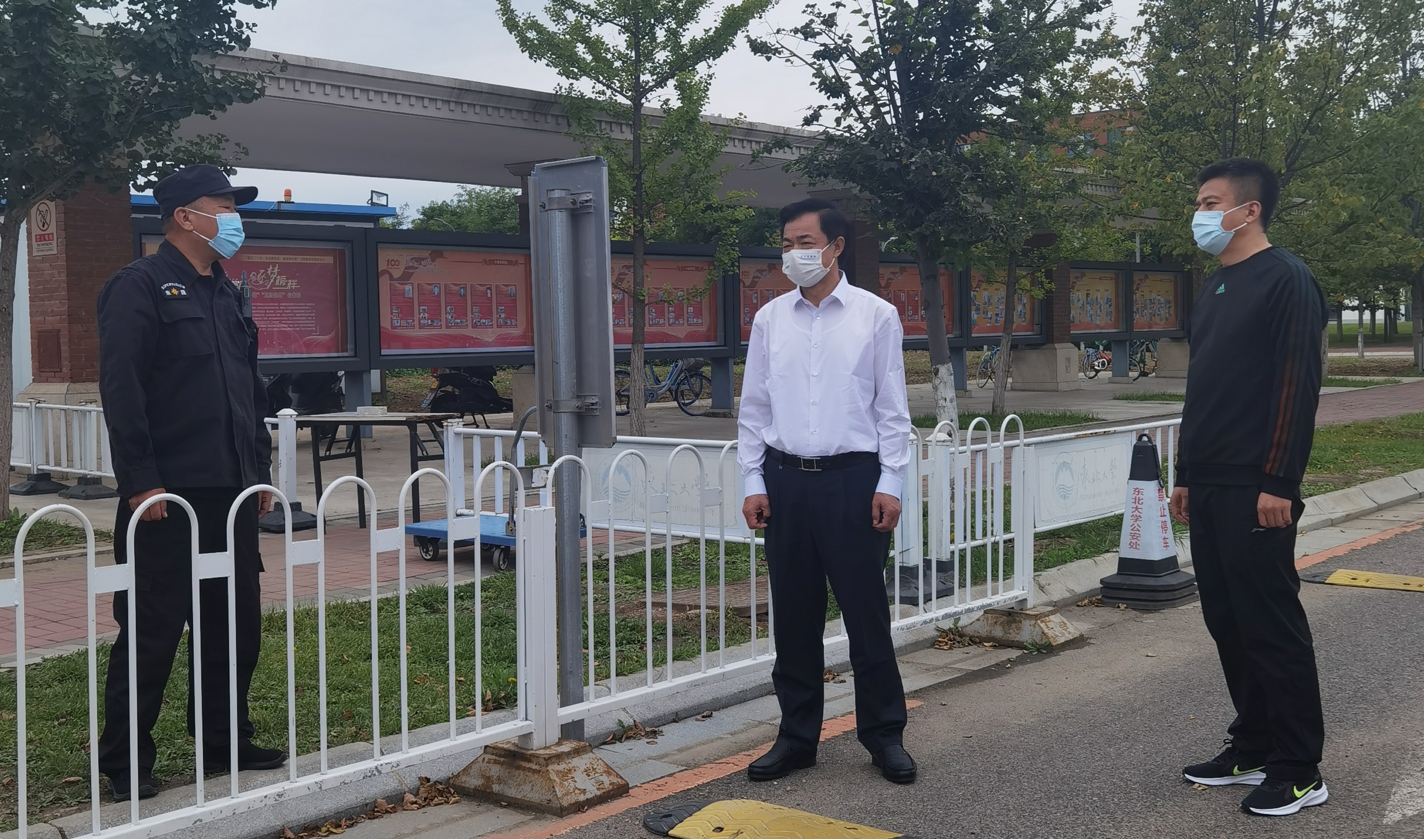 9月5日上午,校长冯夏庭到浑南校区检查指导工作并慰问留校师生,浑南校区管理委员会、相关学院负责人陪同检查。