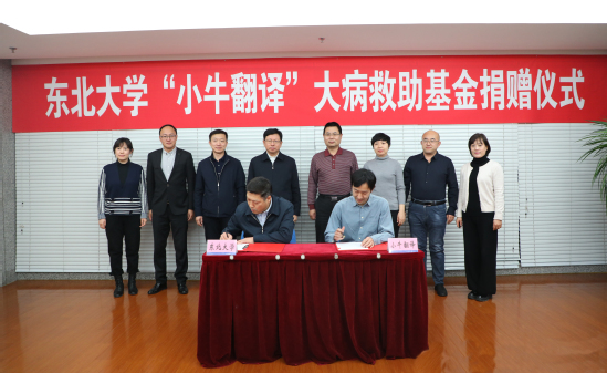 12月7日下午,东北大学“小牛翻译”大病救助基金捐赠协议签字仪式在主楼1401室举行。小牛翻译董事长朱靖波教授一行,副校长孙雷出席捐赠仪式。学生工作处、对外联络与合作处、团委、研究生院、软件学院、校医院相关负责人参加仪式。
