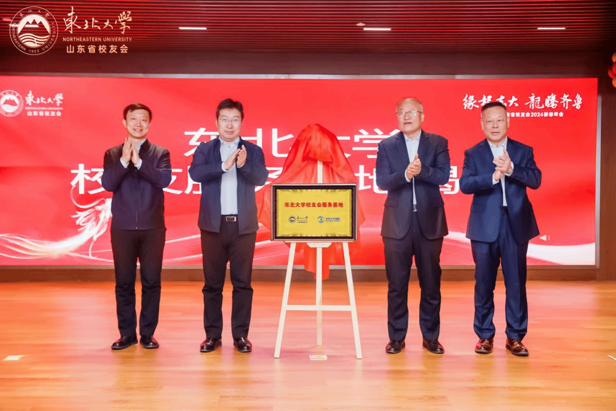褚国良与张皓共同为“东北大学山东校友服务基地”揭牌。