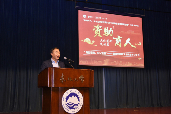12月13日,“资助育人·文化艺术进校园——2019年故宫国博系列活动”东北大学专场活动在汉卿会堂蔡冠深报告厅举行。故宫博物院第六任院长、故宫学院院长单霁翔,东北大学校长赵继,中国银行辽宁省分行副行长周满祥出席活动,中国银行辽宁省分行、东北大学学生指导服务中心相关人员参加活动。单霁翔以“‘不忘初心、牢记使命’,做中华传统文化的忠实守望者”作主题报告,450余名学生参加报告会。
