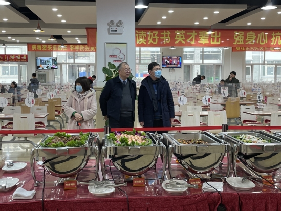 王兴伟详细了解了年夜饭准备情况和就餐人数、就餐时间等,并对后勤员工为留校研究生所付出的辛苦工作表示感谢。