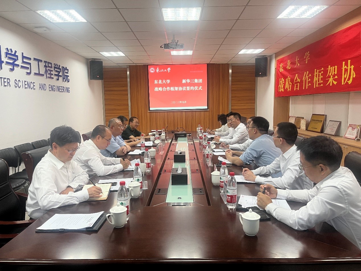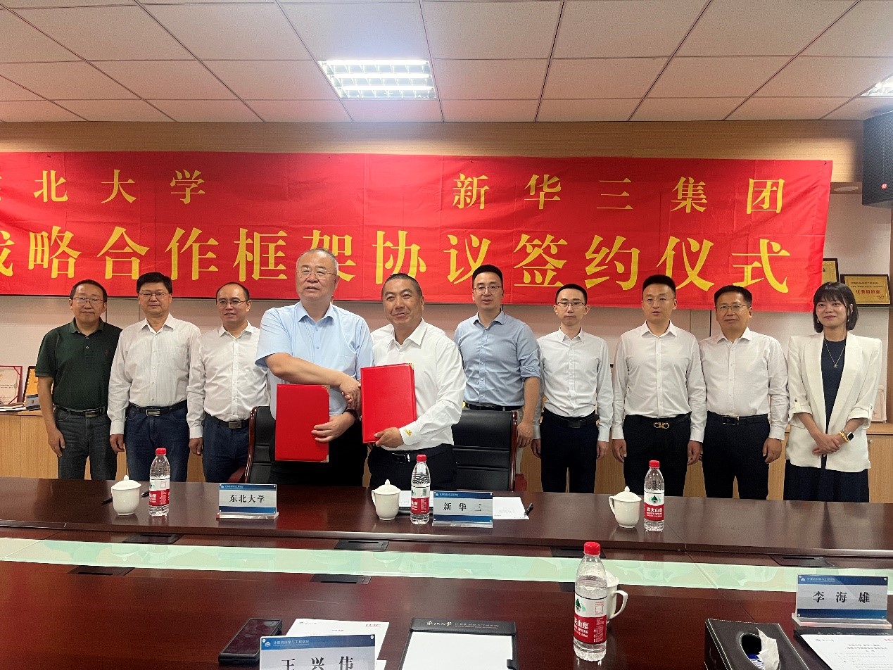 9月13日,东北大学与新华三集团战略合作框架协议签约仪式在浑南校区信息学馆B320会议室举行。紫光计算机科技有限公司董事长兼总裁黄辉华,首席运营官章小伟,新华三集团辽宁代表处总经理赵鹏,产品副总经理鞠永峰,教育医疗行业副总经理高岩,智慧业务首席顾问杨健,教育医疗行业代表宋悦菡,东北大学副校长王兴伟,信息化建设与网络安全办公室、计算机学院相关负责人出席签约仪式。