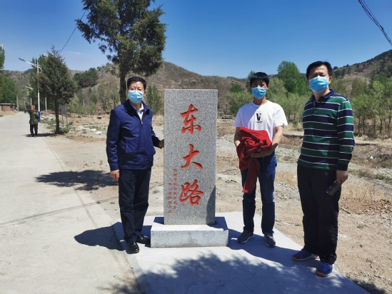座谈会后,孙正林与罗西轩共同为东大路揭牌。东大路是秦皇岛分校为改善傅杖子村基础设施,方便村民出行,出资22万元修建的一条村级主干道,建成后将连通傅杖子村和辽宁省葫芦岛建昌县要路沟乡。村民为感谢分校帮扶工作,特将村口路至北岭路全程命名为“东大路”。