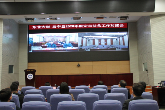 4月14日,东北大学—昌宁县2020年度定点扶贫工作对接视频会议在主楼822室召开。会议总结回顾了2019年定点扶贫攻坚工作,了解了昌宁县经济社会发展和帮扶需求等情况,研讨了 2020年扶贫工作计划及重点,并就下一步拟开展的扶贫项目等进行布置。校党委书记熊晓梅、党委副书记张国臣,昌宁县副县长张加全,东北大学挂职扶贫干部、昌宁县副县长张耀伟以及双方相关部门负责人参加会议。