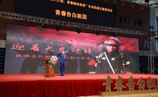 辽宁省抚顺市新抚区消防救援大队副大队长高大千作为特邀嘉宾以“迎着火光冲锋”为题,讲述了他在灭火抢险救援第一线的工作经历,一声声铿锵有力的呐喊,一次次不顾生命安危的冲锋,他和他的战友们用坚实的胸膛向祖国深情告白,感染和激励青年学生勇担为祖国建设、为人民利益不懈奋斗的青春使命。