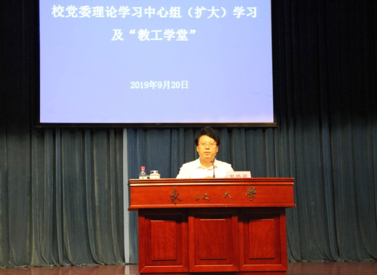 9月20日,以“不忘初心、牢记使命”为主题的校党委理论学习中心组(扩大)学习及“教工学堂”在汉卿会堂蔡冠深报告厅举行。此次学习特邀东北大学马克思主义学院院长田鹏颖教授以“中国共产党的初心和使命”为题作报告,此次报告会是“不忘初心、牢记使命”主题教育首场专题辅导报告。教育部第五巡回指导组副组长韩晓峰,成员梁建,学校领导班子成员、副处级及以上干部、全校教职工党支部书记参加学习。