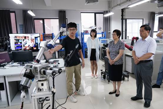 座谈会后,熊晓梅考察了机器人智能感知与交互技术辽宁省工程研究中心和智能机器人沈阳市重点实验室,观看了移动机器人实验室、仿人机器人实验室、东北大学—新松智能协作机器人联合实验室科研成果展示,并与学院师生就机器人设计开发、成果推广应用、学生科技创新活动等进行了广泛交流。熊晓梅对学院研究团队在机器人领域取得的创新性科研成果表示祝贺,并表示,学院要充分发挥学科专业特色,抢抓发展机遇,加大机器人领域高端人才引进力度,充分利用校企合作的优势,在省、市级机器人实验室和工程中心建设成果的基础上,向国家级机器人教学科研平台目标迈进,助力学校一流大学建设。