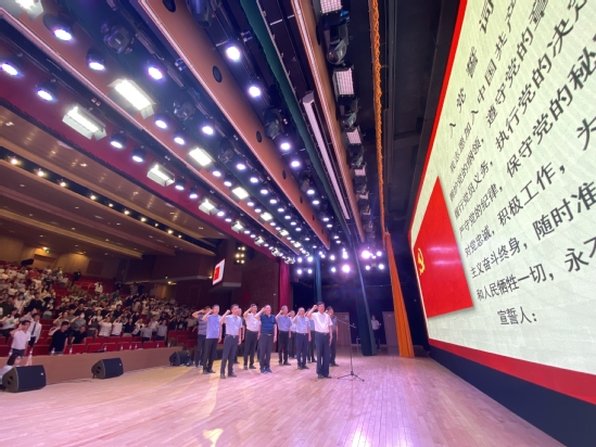 课程内容讲授后,由孙雷领誓,各部门负责人及听课全体党员一起重温入党誓词,合唱党建歌曲《不忘初心》,庆祝党的百年华诞。