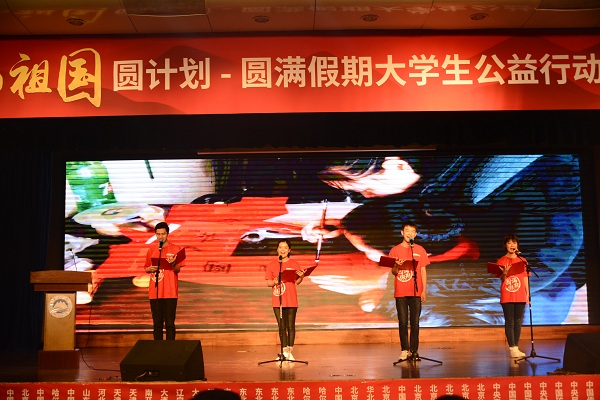 会上,本季的志愿者代表朗诵了《我的圆满假期》主题诗,表达了一起行小善,成大爱,共绘“我和我的祖国”美丽图景的愿望。随后,东北大学志愿者协会代表上台,带领在座的200余名志愿者共同宣誓,为留守儿童送去关爱、温暖,帮助他们实现梦想。