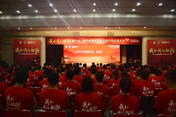 7月14日,“我和我的祖国”圆计划-圆满假期大学生公益行动沈阳站出发大会在东北大学学生活动中心多功能厅举行。共青团沈阳市委员会副书记马宁、联想中国副总裁东北大区总经理张欣、东北大学党委副书记张国臣等出席活动。