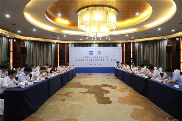 7月25日,河钢东大产业技术研究院理事会二届一次会议在东北大学国际学术交流中心举行。河钢集团党委书记、董事长于勇,河钢集团副总经理、首席技术官王新东,河钢集团钢研总院院长、集团科技管理部总经理李建新,河钢集团战略总监、战略研究院院长李毅仁,东北大学党委书记熊晓梅,校长赵继,中国工程院院士王国栋,副校长唐立新出席会议。