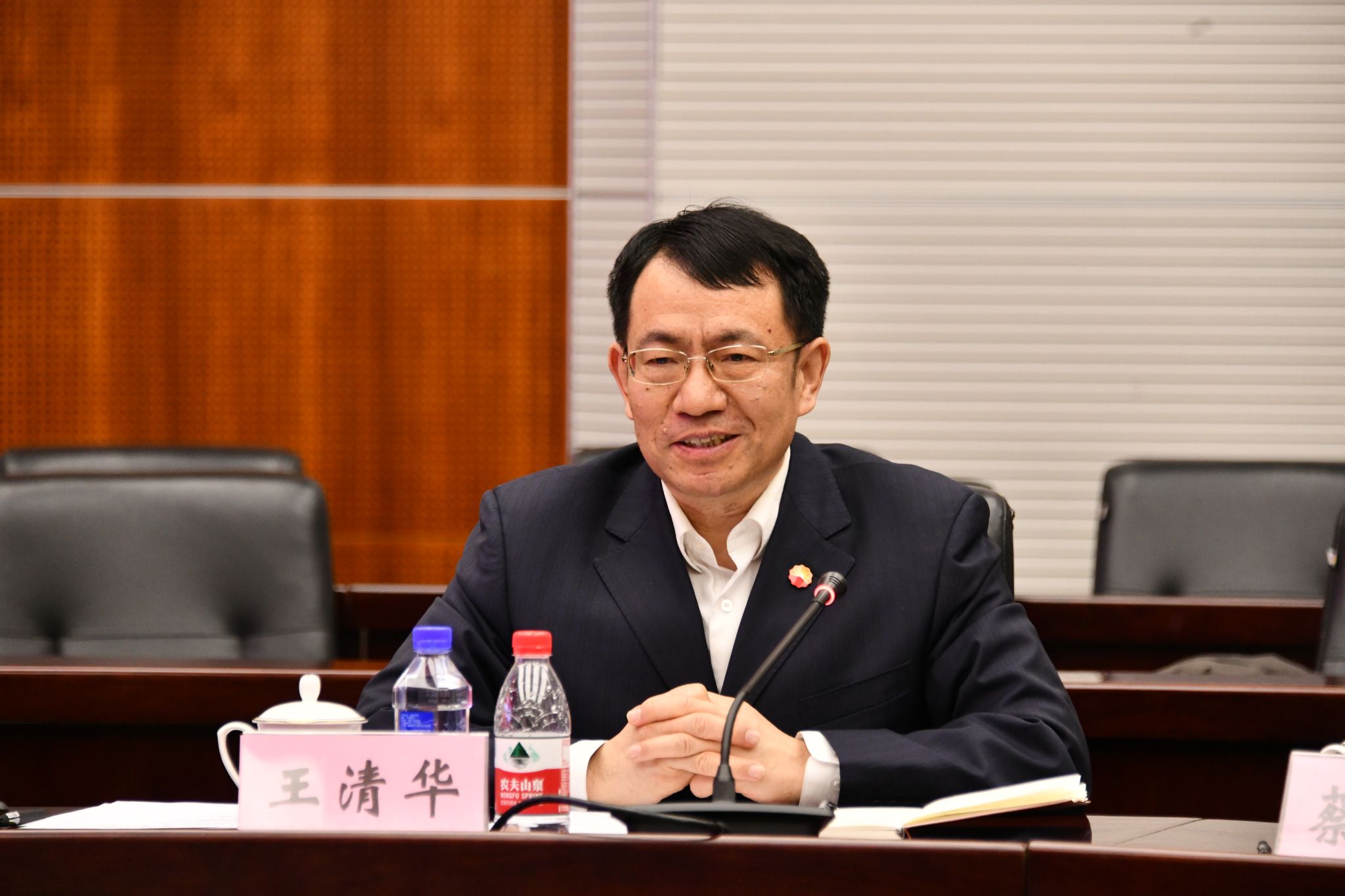 签约仪式前,王清华为东大学生作了《挺进超深层,建设大油气田》专题报告,并参观了东北大学深部金属矿山安全开采教育部重点实验室。