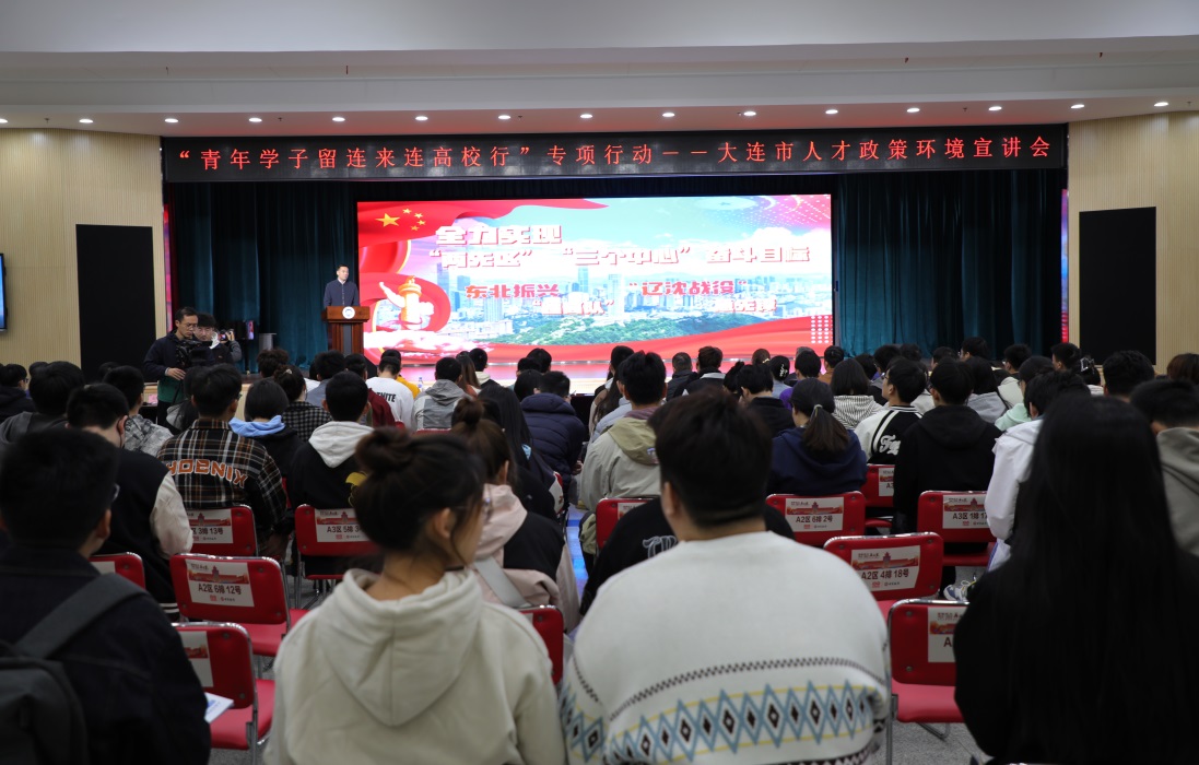 10月20日,“青年学子留连来连高校行”专项行动——大连市人才政策环境宣讲会在东北大学学生活动中心举行。大连市委组织部副部长李东到东北大学作“大才兴连 生态筑梦——携手共创大连美好未来”主旨宣讲,向东大学子宣传大连的人才政策,推介大连的优质岗位,诚邀同学们到大连建功立业、共创美好未来。东北大学副校长王辉出席宣讲会,300余名东大学生参加宣讲会。