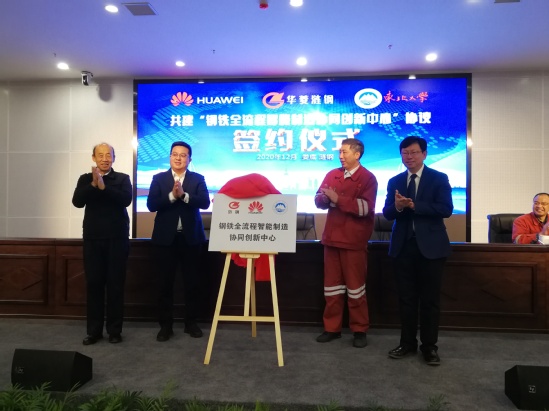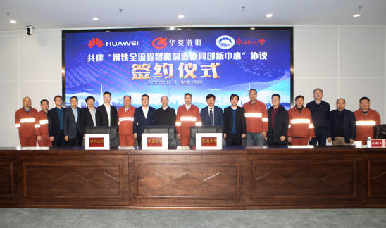 12月16日上午,涟源钢铁集团有限公司、华为技术有限公司、东北大学三方在娄底市涟钢云数据中心举行共建“钢铁全流程智能制造联合创新中心”签约仪式暨揭牌仪式。涟钢集团党委书记、执行董事肖尊湖,华为技术有限公司湖南省副总经理李建平,中国工程院院士、东北大学王国栋教授,东北大学副校长孙雷出席仪式。