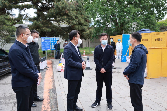 5月6日,和平区区长张德来校调研疫情防控工作。东北大学校长冯夏庭、学校疫情防控领导小组办公室有关负责人陪同调研。