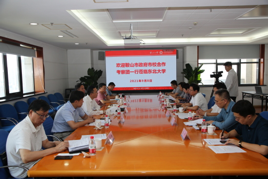 9月8日,鞍山市政府市校合作考察团赴东北大学进行合作洽谈,双方在主楼1401举行座谈。鞍山市人民政府副秘书长、鞍山市驻北京办事处主任苏晓峰,鞍山市科学技术局局长高大壮,东北大学副校长孙雷出席会议,党委组织部、研究生院、科学技术研究院、对外联络与合作处、东北振兴研究中心有关负责人参会。