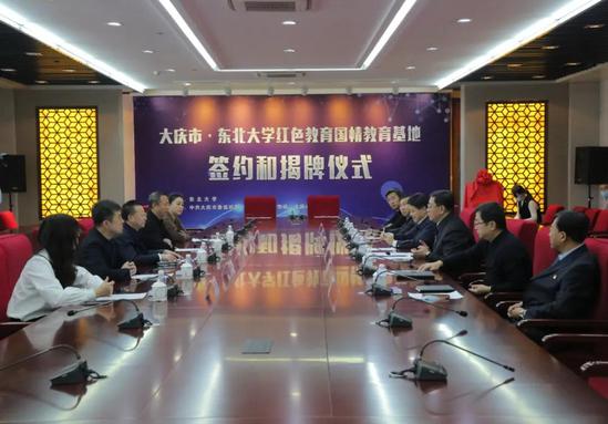 12月24日,东北大学·大庆市红色教育国情教育基地座谈、签约和揭牌仪式在大庆市委党校举行。校党委副书记、党校校长张国臣出席并为教育基地揭牌,相关部门负责人参加本次活动。
