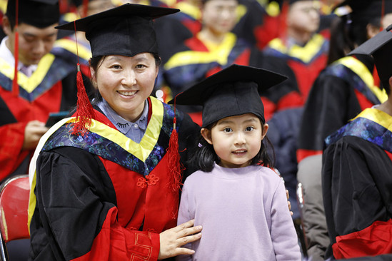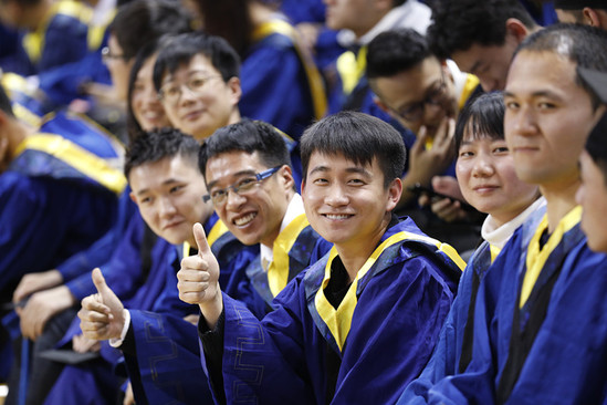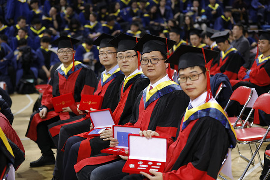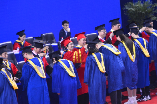 校学位委员会委员、学校领导、两院院士、学院院长以及教师代表为毕业研究生颁发学位证书和纪念品,为他们扶正流苏并合影留念。