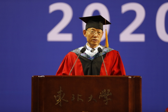 校长赵继作了题为“弘毅致远 笃定向前”的讲话。赵继代表学校向全体毕业生表示最热烈的祝贺,向精心培育他们的老师致以衷心的感谢。赵继表示,2020届毕业生就读东大这几年,正是学校“双一流”建设的关键时期,每个人都把求实的精神融入到学习生涯中,将求索的脚印驻留在东大校园里,都是学校创新发展、特色发展、开放发展的参与者、推动者和见证者。同学们风华正茂,生逢其时,时代赋予你们建功立业的际遇,同时也带来瞬息万变的挑战。我国自主创新能力还有差距,许多领域核心技术尚需突破,深层次的改革难题亟待破解。这就需要同学们有“板凳一坐十年冷”的耐力和“为伊消得人憔悴”的坚守,只有坚持不懈,才会始有大成。赵继希望,同学们以淡泊之心胸怀天下,以坚守之心奋发有为,不断突破生命的高度,拓展眼界的广度,锲而不舍,勇于担当,在实现民族复兴的奋斗中追逐人生梦想。衷心祝愿同学们所求皆所愿,重心亦重行,弘毅致远,笃定向前!
