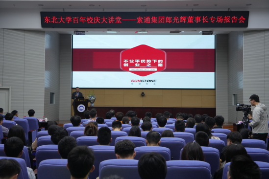 4月24日,东北大学百年校庆大讲堂之索通集团郎光辉董事长专场报告会在主楼822室举行。东北大学校友、索通发展股份有限公司董事长郎光辉应邀作专题报告,副校长孙雷出席报告会,索通集团及东北大学相关部门负责人参加会议。