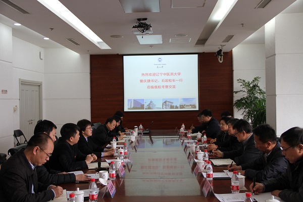 3月5日,辽宁中医药大学党委书记曾庆捷,党委副书记、校长石岩率团来校调研,我校党委书记熊晓梅、副校长孙雷与来访客人在主楼1304室举行座谈。