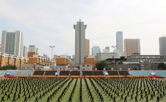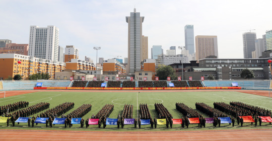 9月24日,东北大学2021级学生军训总结汇报大会在五四体育场举行。中国人民解放军32126部队副政委安柏阳上校,军训团团长李兆武上校,东北大学党委副书记张国臣,各学院及相关部门负责人等出席大会。