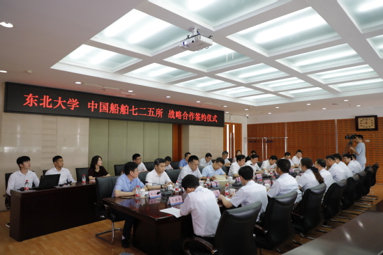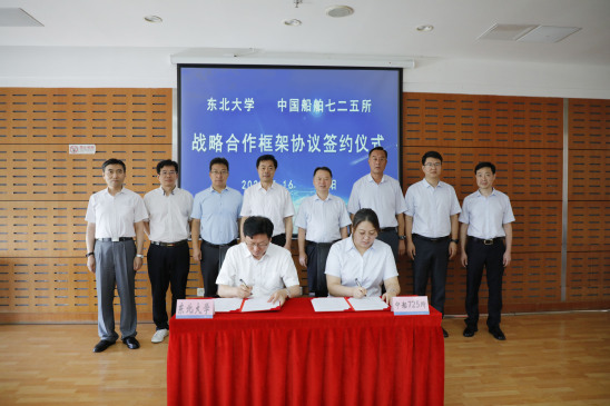 7月16日,东北大学与中国船舶集团有限公司第七二五研究所战略合作框架协议签约仪式在汉卿会堂308室举行。中国船舶集团有限公司第七二五研究所所长王其红、副所长廖志谦,东北大学校长冯夏庭、副校长孙雷出席签约仪式。中国船舶集团公司首席专家、七二五所研究室、科技与信息化处、人力资源处等相关部门负责人,东北大学科学技术研究院[国防科技发展研究院]、人事处、对外联络与合作处、冶金学院、材料科学与工程学院、轧制技术及连轧自动化国家重点实验室、秦皇岛分校资源与材料学院、秦皇岛分校科技处等相关负责人参加签约仪式。