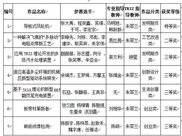 东北大学第七届中国“TRIZ”杯大学生创新方法大赛学生组作品获奖名单