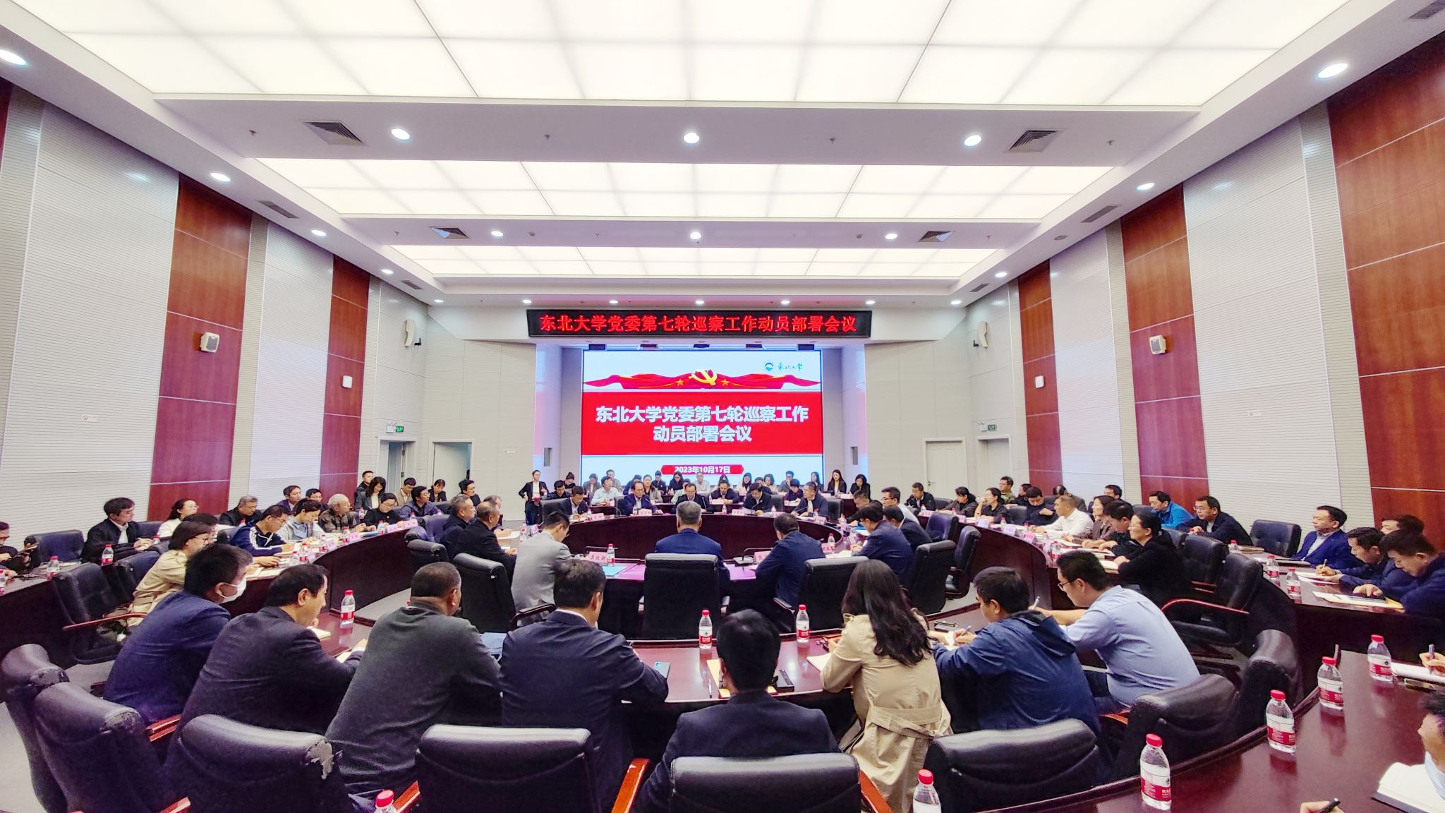 10月17日下午,东北大学党委第七轮巡察工作动员部署会在主楼824室召开。会议以习近平新时代中国特色社会主义思想为指导,深入学习贯彻习近平总书记给东北大学全体师生重要回信精神和党的二十大精神,深入落实党中央、教育部党组关于巡视巡察工作的部署要求,对学校党委第七轮巡察进行动员部署。校党委书记、党委巡察工作领导小组组长郭海,校长、党委巡察工作领导小组组长冯夏庭,党委副书记、党委巡察工作领导小组副组长王玉琦,党委副书记、纪委书记、党委巡察工作领导小组负责日常工作的副组长吴豪伟,副校长王辉,巡察工作领导小组成员,巡察组成员,被巡察党组织书记、被巡察单位行政主要负责人,巡察工作办公室人员参加动员部署会。会议由冯夏庭主持。