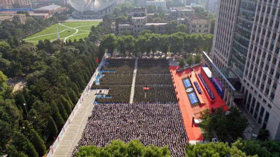 8月31日,东北大学隆重举行2023级学生开学典礼。11000余名2023级本科生、研究生和留学生新生齐聚南湖校区知行广场,共同开启人生新征程。军训团团长、32126部队刘大勇中校,校领导郭海、冯夏庭、王玉琦、吴豪伟、孙雷、徐峰、唐立新、王强、王兴伟、王辉、张皓,各学院和有关部门负责人、军训团教官出席大会。副校长王强主持典礼。