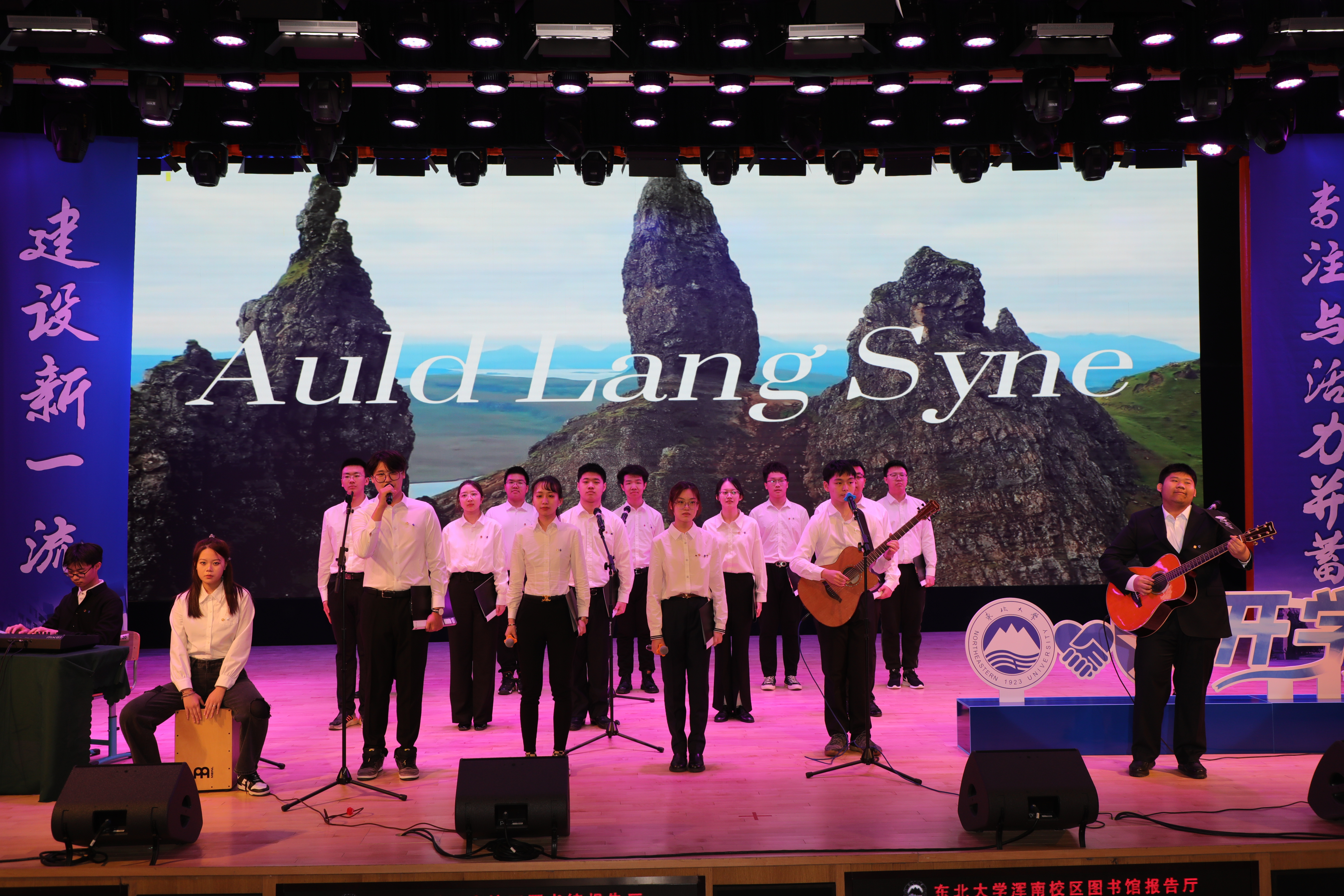 2022级新生代表为与会人员带来配乐诗朗诵《友谊地久天长》,诠释出东北大学与邓迪大学的深厚友谊。