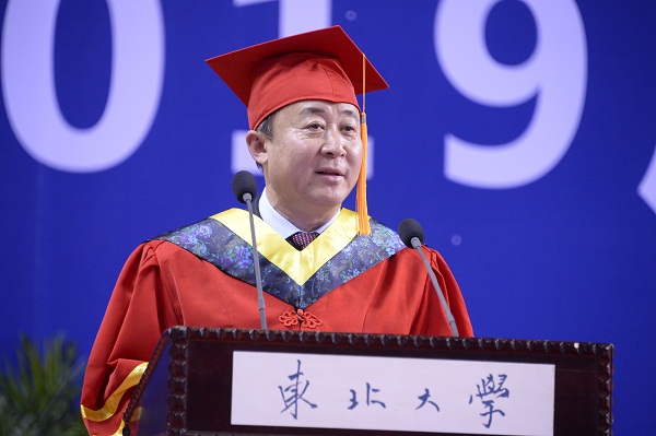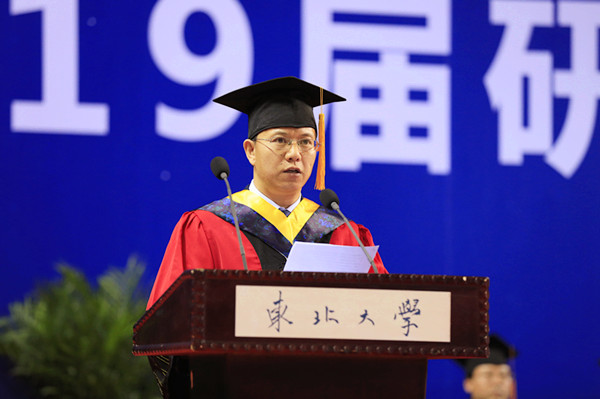 校长赵继作了题为“再回来还是东大人”的讲话。赵继代表学校向全体毕业生同学表示最热烈的祝贺,向辛勤培育他们的家长和导师致以崇高的敬意。赵继表示,2019届毕业生在学习与研究的交融中锤炼品质,在学生与学者的转换中展露风范,在创新与创业的探索中彰显卓越,是东北大学事业创新发展的见证者和贡献者。赵继希望,全体毕业生知深行远、拥抱新时代,矢志奋斗、建设新时代,担当报国、创造新时代,将自己的理想志向与国家、民族的命运紧密相连,与时代发展同向同行,用“胸怀天下、勇于担当”的气魄擎起持久不变的报国情怀,在实干和奉献中实现个人价值,在创新和实践中引领时代潮流。风雪漫漫,前路迢迢,不忘初见,不问归期,只因为再回来还是东大人。