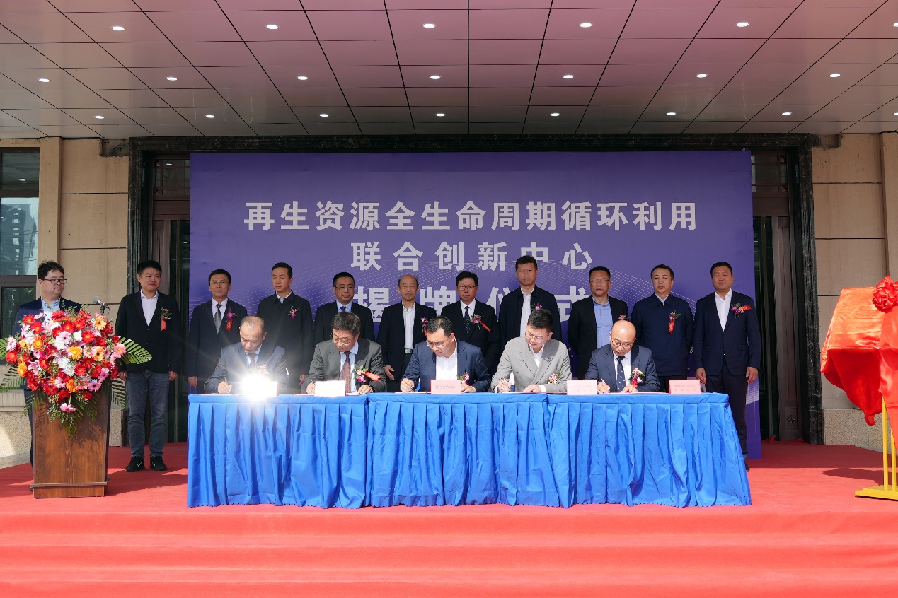 东北大学、辽宁陆帆集团有限公司、鞍钢钢研院、鞍钢废钢资源有限公司、沈阳城市资源循环利用科技有限公司代表共同签署战略合作协议。孙雷、王国栋、于胜林、刘大威、徐强、田勇、王琳、关正君、牛大群、宋社朝共同为“再生资源全生命周期循环利用联合创新中心”揭牌。