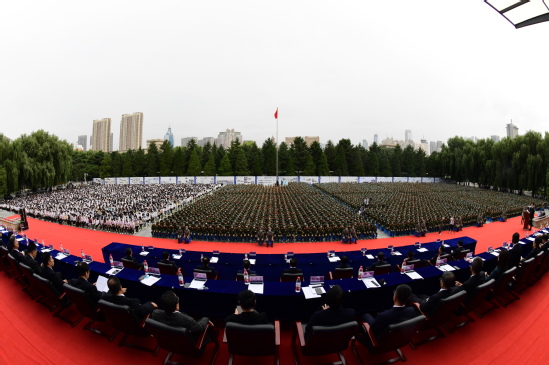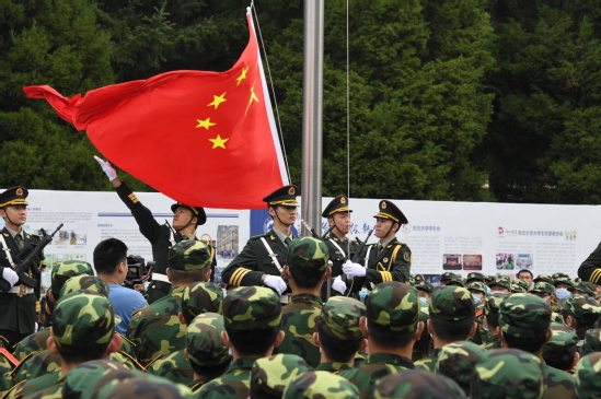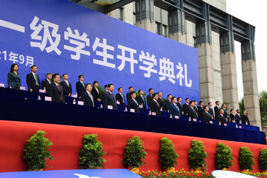 9月13日,东北大学2021级学生开学典礼在知行广场隆重举行。军训团团长、32126部队李兆武上校,校领导熊晓梅、冯夏庭、孙正林、杨明、张国臣、孙雷、刘建昌、王建华、唐立新,校党委常委、组织部部长王辉,各学院和有关部门负责人、军训团教官等出席典礼。2021级全体本科生、研究生参加开学典礼。副校长王建华主持典礼。