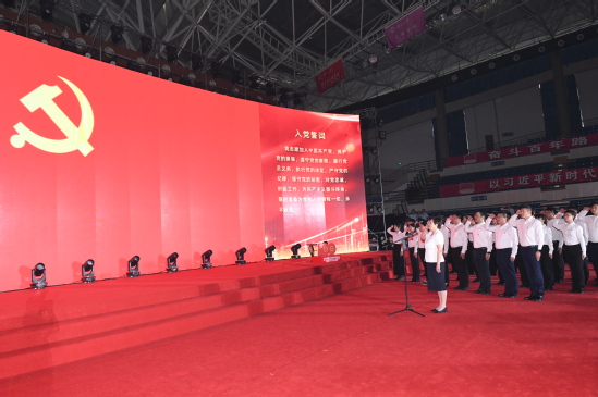 “我志愿加入中国共产党……”在校党委书记熊晓梅的带领下,新党员面向党旗庄严宣誓,与会党员们也一同重温了入党誓词。