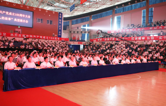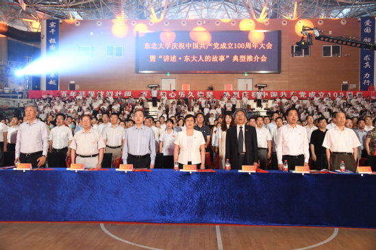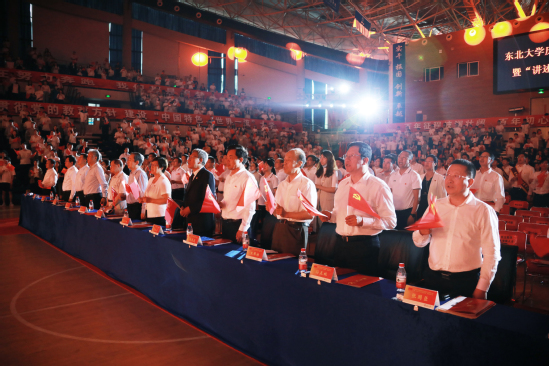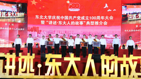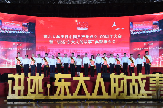 6月28日下午,东北大学在刘长春体育馆隆重举行庆祝中国共产党成立100周年大会暨“讲述·东大人的故事”典型推介会。大会宣布了上级党组织表彰决定,表彰了我校2019-2021年度“两先两优”集体和个人,为“光荣在党50年”老党员代表颁发纪念章,组织新党员入党宣誓、老党员重温入党誓词,并通过视频展示、访谈互动等丰富多彩的形式推介展现东大人的感人事迹。