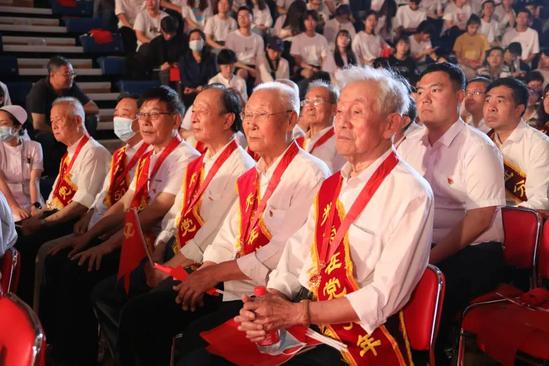 2021年,党中央首次颁发“光荣在党50年”纪念章,东北大学共有363名老党员获得纪念章。此次大会特别邀请了其中10位老党员出席大会。他们是:刘福三、王镛、王振范、远德玉、王文忠、许宝栋、陈升田、张庆云、程秋木、曾宪令。校领导为“光荣在党50年”老党员代表颁发纪念章。