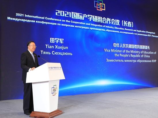9月7—8日,由教育部、吉林省人民政府指导,教育部学校规划建设发展中心主办的“2021国际产学研用合作会议(长春)”通过线上线下相结合的方式在长春召开。教育部副部长田学军、俄罗斯科学和高等教育部副部长阿法纳西耶夫、吉林省人民政府副省长安立佳出席开幕式并致辞。会议以“面向未来的融合式创新合作”为主题,来自中国、俄罗斯、乌克兰、白俄罗斯等18个国家的高校、企业、科研院所的360余位院士、校长和专家学者参加了开幕式,60余所高校的千余位师生代表在线观看了网络直播。中国工程院院士、东北大学校长冯夏庭应邀出席会议及“第十二届中韩大学校长论坛”等相关活动。
