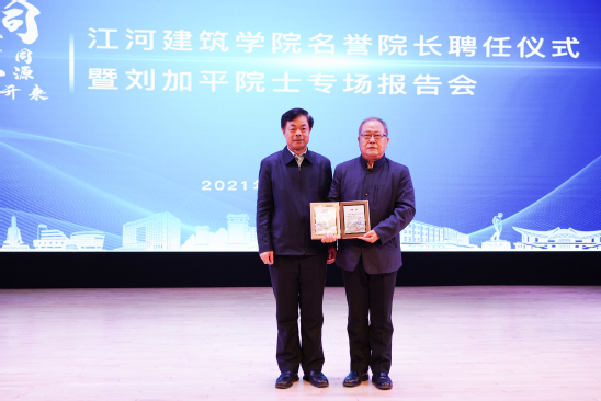 孙雷主持聘任仪式。刘加平受聘为东北大学江河建筑学院名誉院长,冯夏庭为刘加平颁发聘书。冯夏庭表示,今年是中国共产党成立100周年,也是“十四五”规划开局之年,学校十分荣幸能够聘任刘加平院士担任东北大学江河建筑学院名誉院长,这将对我校建筑学科提升综合实力、推动学科建设跨越式发展起到至关重要的作用。冯夏庭强调,江河建筑学院师生要坚持传承历史、创新发展、攻坚克难,不断提升人才培养质量、学科综合实力、教学科研能力和社会服务水平,在推进学校“双一流”建设进程中取得更大的成绩和突破,将江河建筑学院建设成为国内一流的建筑学院,续写东北大学建筑学科辉煌历史。