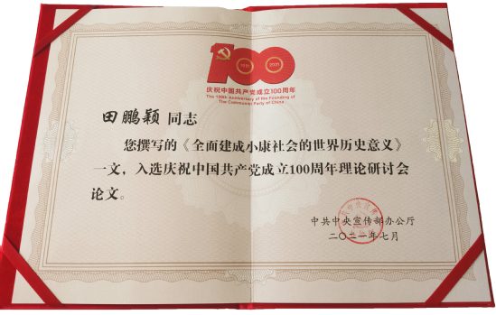 7月1—2日,庆祝中国共产党成立100周年理论研讨会在北京隆重召开,中央政治局常委、中央书记处书记王沪宁同志出席会议并发表讲话。这次理论研讨会是中国共产党成立100周年庆祝活动的一项重要内容,全国共有100篇论文入选研讨会。田鹏颖教授作为理论文章入选者参加了本次研讨会,与其他参会代表围绕习近平总书记在庆祝中国共产党成立100周年大会上发表的重要讲话展开学习交流,并在小组研讨中作了代表发言。
