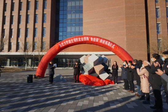 赵继代表学校向“鲁班锁”雕塑的落成表示祝贺,向湖北省校友会捐赠助学和因疫情影响不能来校参加仪式的各位校友们致以崇高的敬意和由衷的感谢,还通过视频向海内外各届东北大学校友致以新年的问候。赵继表示,湖北省校友会为母校捐赠了象征“同心协力、工匠精神”的“鲁班锁”雕塑,既是对东北大学“自强不息、知行合一”校训精神的传承,也彰显着湖北校友“同心协力、众志成城”战胜新冠肺炎疫情的抗疫精神。东北大学浑南校区从无到有、从一纸蓝图到九大学院入驻、从奠基培土到璀璨校园,承载了几代东大人的美好夙愿,汇集了海内外校友和师生们的共同期盼,更凝聚了建设者们的艰辛奋斗。赵继指出,坐落在浑南校区的“鲁班锁”雕塑,将是对这段团结奋进建校史的诠释铭记,是万众一心、建设一流的光明指引,更是筑梦东大、建百年名校的美好演绎,待到疫情结束,欢迎海内外校友们常回母校看看。