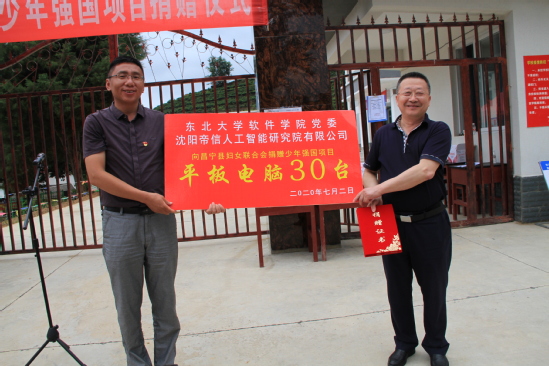 2日上午,张国臣一行来到由东北大学援建的勐统镇大河村完小考察调研,并参加由我校软件学院党委、沈阳帝信人工智能研究院和昌宁县妇联联合开发的“少年强国——贫困儿童和留守儿童成长环境和教育条件提升”项目捐赠仪式,为大河村完小捐赠装有“少年强国APP”的平板电脑30台。张国臣在捐赠仪式上表示,2019年,东北大学经过多方筹措230万元资金,为大河村完全小学建起了包括教学楼、运动场等基础设施在内的崭新校园,并大力号召学校二级部门凝聚帮扶共识、汇聚帮扶力量,以结对帮扶、支部共建、捐资捐物等多种方式关爱昌宁教育事业的发展,为大河村完全小学配备了热水器、窗帘、彩电、电脑等相关配套设施。我校扶贫干部高大鲲带领支教团成员开设了高原上的微思政课堂,开办了素质拓展、手工、音乐、足球、舞蹈等多门课程,将兴趣养成教育融入日常课堂教学之中;艺术学院党委通过自己捐赠的电视终端给孩子们上艺术课,实现远程线上教学,让孩子们在蓝天下共享优质教育资源。希望孩子们珍惜韶华、勤奋学习,努力成长为德智体美劳全面发展的社会主义建设者和接班人。据悉,少年强国APP是一款为改善贫困儿童及留守儿童环境、教育条件等研发的软件,它基于移动互联网和人工智能技术,构建在线儿童健康成长陪伴平台,包括在线心理疏导、学习辅导、音视频教育资源的个性化推荐、儿童心智画像分析等内容。该项目的实施,有助于改善贫困和留守儿童缺乏关爱、教育资源不平衡等现象,还能更好地激发贫困儿童、留守儿童的学习热情。软件学院郭军教授等还深入昌宁县妇联、田园镇达仁完小指导平板APP操作实践,学生们在老师的指导下使用平板进行APP线上学习,现场与东北大学的线上志愿者们进行交流互动。