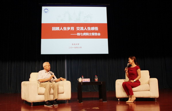 6月24日,国家最高科学技术奖获得者、我国现代防护工程理论奠基人、防护工程学科的创立者、中国工程院首届院士钱七虎教授做客东北大学建龙大讲堂,在汉卿会堂蔡冠深报告厅为我校师生以及在沈部分高校师生做专题思政报告,分享自己毕生“矢志铸盾、丹心报国”的奋斗历程和人生感悟,并与在场师生进行了亲切互动。