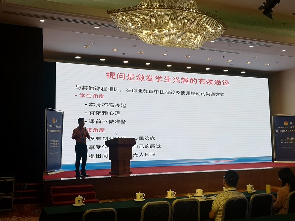 会上,创新创业学院贾建锋副院长作为本次大会的特邀嘉宾,在高校创新创业教育经验交流论坛发表“创业教育中的问题情境设计和创造力激发”的主题演讲,这是创新创业学院代表连续四年作为特邀嘉宾在全国KAB创业教育年会上发表主题演讲。贾建锋从分享的缘起、猜想悬念式问题情境的设计等六大方面详细阐述了如何在创业教育中利用好问题情境设计,从而激发学生创造力。