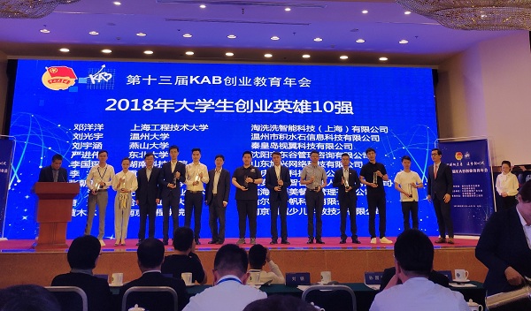 5月31日,第十三届全国KAB创业教育年会在京举办。工商管理学院2018届毕业生严进伟获得“全国创业英雄十强”称号,并作为获奖代表上台领奖。