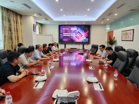 在中微半导体设备(上海)股份有限公司,董事长兼总经理尹志尧、中微公司相关部门负责人及中微公司部分校友代表与王兴伟一行进行了亲切会谈。尹志尧从宏观层面介绍了半导体微观加工设备产业的发展、挑战及未来展望,以及中微公司联合国内大学探索“微观加工”交叉复合人才培养的计划。王兴伟介绍了东北大学未来技术学院在前沿交叉学科方面的发展情况,以及在半导体真空设备方向人才培养的创新探索。王兴伟强调,希望双方未来在真空工程技术培训、半导体微观加工交叉复合人才培养等领域开展深入合作。