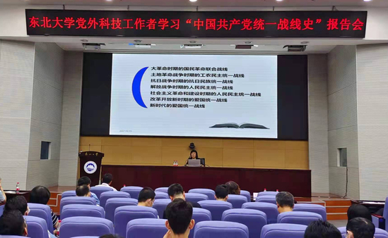 6月15日,东北大学在主楼822室举办党外科技工作者学习“中国共产党统一战线史”专题报告会,深入贯彻落实习近平总书记关于加强和改进统一战线工作的重要思想,激励广大党外科技工作者从中国共产党百年党史中汲取继续前进的智慧和力量。
